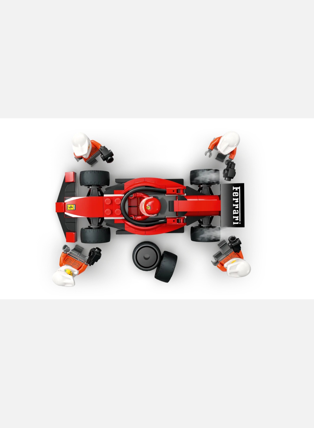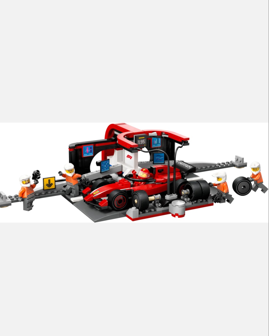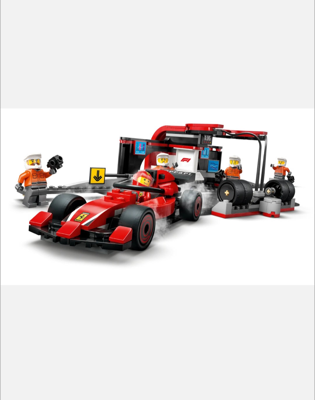 - What’s in the box? – Everything kids need to build an F1® pit stop and Ferrari toy car, plus driver and 4 pit crew minifigures