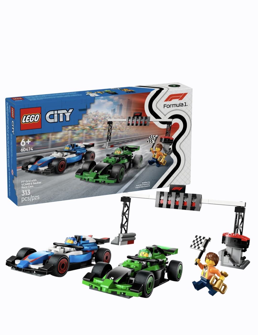 - LEGO® City F1® toy vehicle set – Get kids’ race play off to a flying start with the LEGO City F1 Grid with VCARB & Sauber Race Cars building set for ages 6 and up
