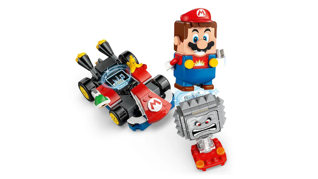 - Interactive toy – Race the Standard Kart with LEGO® Mario™, earn digital rewards from the Item Box, defeat the Bob-omb and Thwomp, see how LEGO Mario reacts to the green and red LEGO plates, and more