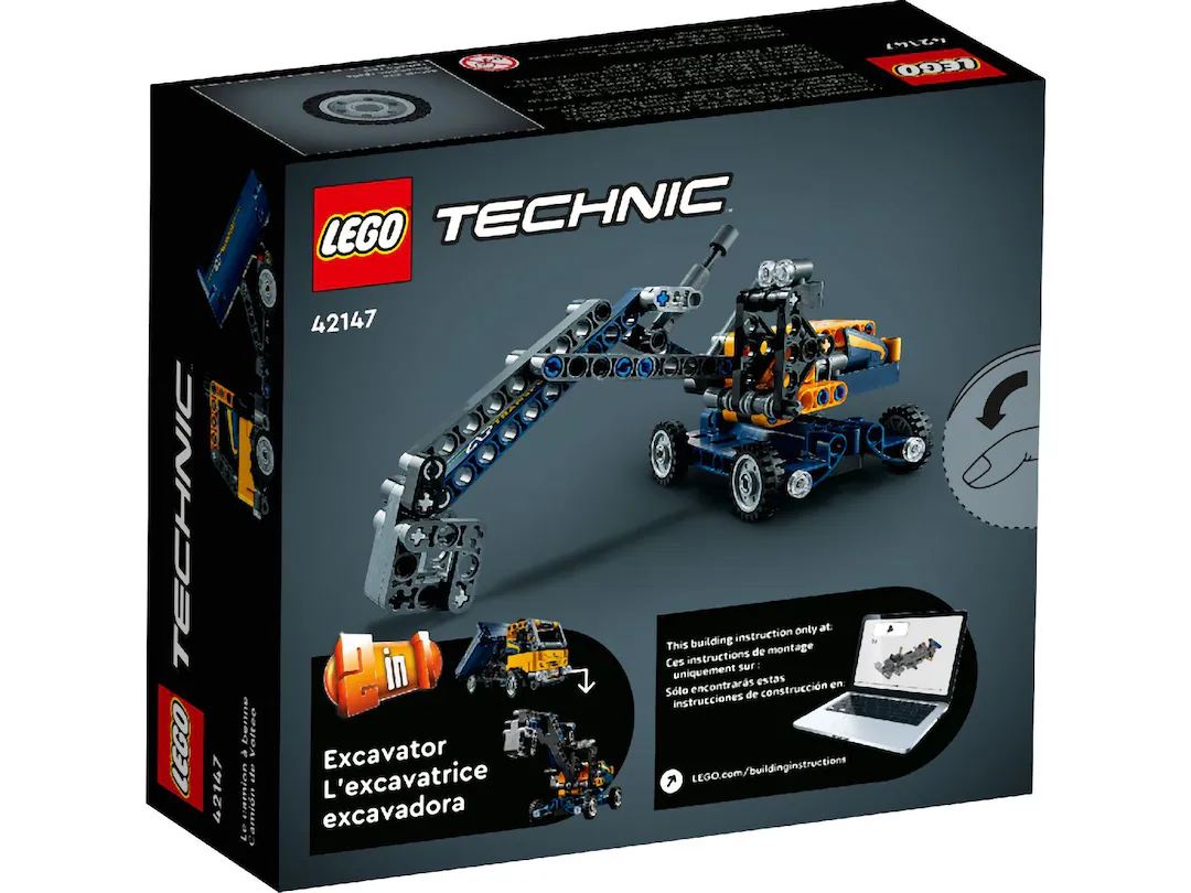 • 2-in-1 build – This set features 2 models in 1. When kids are ready for a new building challenge, the Dump Truck rebuilds into an Excavator toy