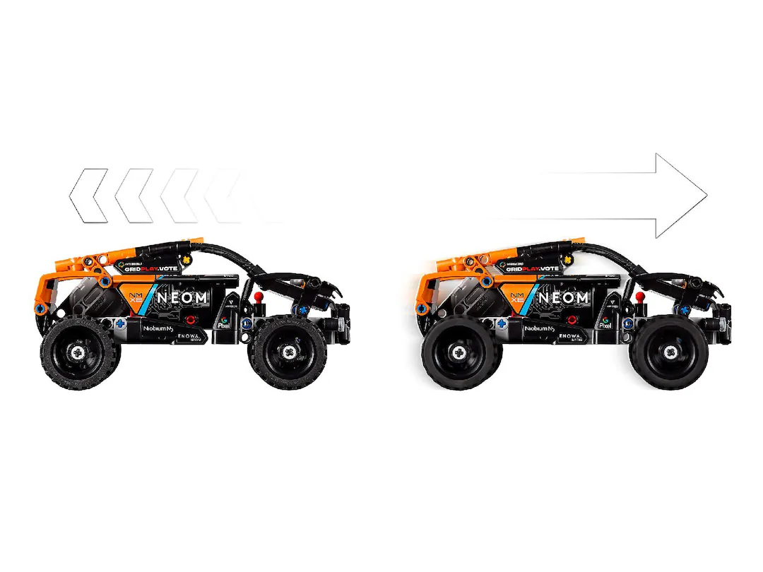 - Pull-back car toy – Kids can send their LEGO® Technic™ model speeding along using the pull-back action as they imagine racing around the world like a real Extreme E driver